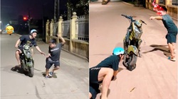 Thấy tên cướp giật túi xách của người phụ nữ đi bộ trên vỉa hè, tài xế liền lái ô tô lao tới và húc hắn ngã xe máy nhiều lần.