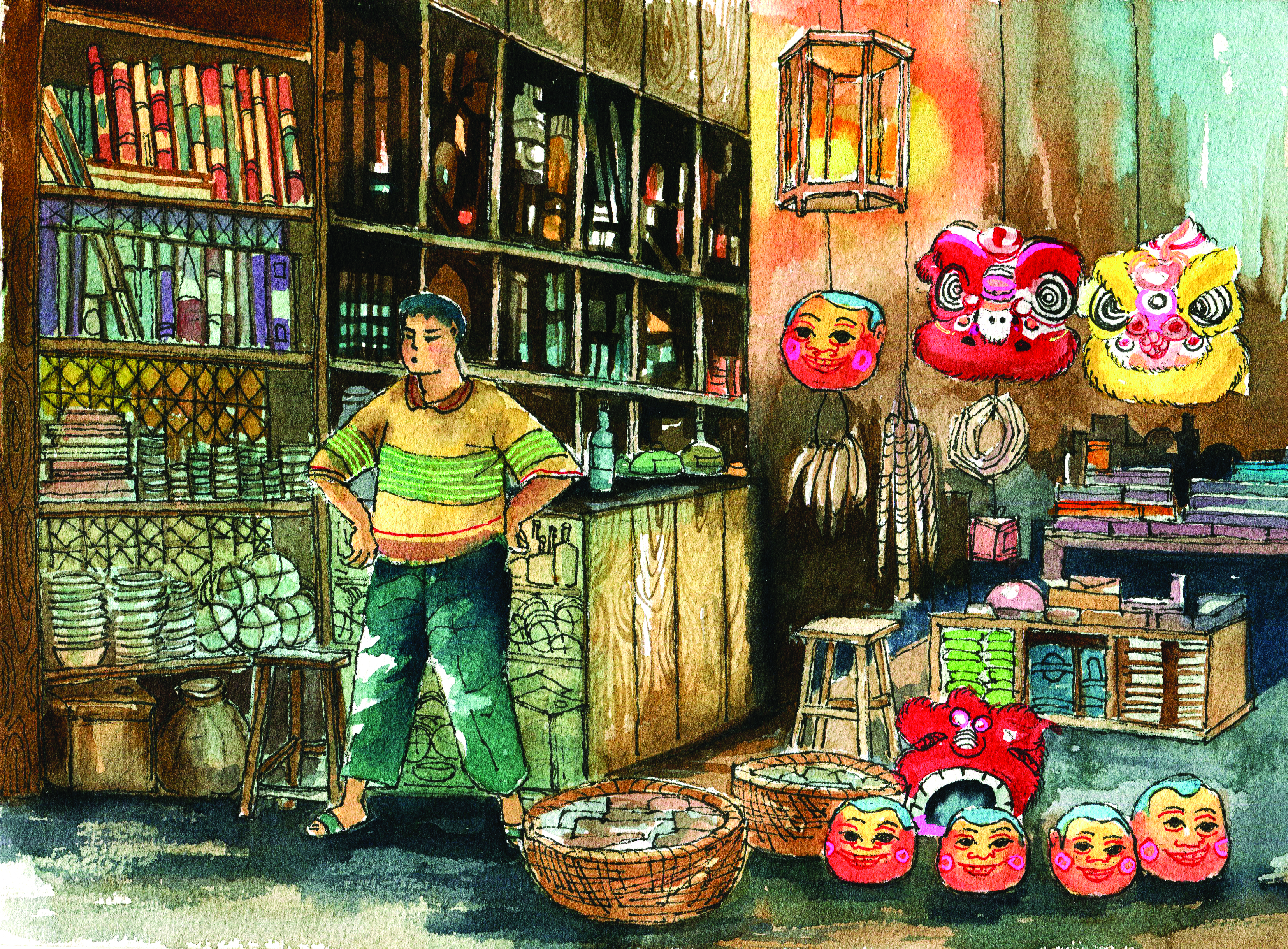 TTCT - Những ngày Tết xóm Cây Gõ xưa, trong lòng Thành như sân khấu cải lương đã hạ màn, chỉ còn chút dư âm trong lòng... Tiệm chạp phô. Tranh: Phạm Công TâmỞ xóm Cây Gõ thuộc quận 6 này, đám con nít cứ đi ngang tiệm chạp phô của ông Tiệm là biết Tết sắp về - anh Tấn Thành, 64 tuổi, cư dân cũ của xóm cây Gõ, nhớ lại. Thường ngày, tiệm của ông bày làng nhàng các vật dụng thông thường, bỗng chất đầy các thứ hàng hóa đưa về từ chợ Bình Tây. Lạp xưởng treo lủng lẳng khắp nơi, nước mắm tĩn bỏ đầy sân, nhang đèn, phong bao lì xì, cả đầu lân, đầu ông Địa loại nhỏ. Ai cũng hối hả mua các thứ cần thiết vì biết ông sẽ đóng cửa ba ngày Tết. “Đầu năm mua muối, cuối năm mua vôi”, mua vôi quét tường, kéo về nhà lade, nước ngọt, mua thùng thiếc đựng nước đá, ra chợ xin miếng trấu bỏ vô giữ đá lâu tan, mua nước mắm tĩn ngon để kho thịt. Ông Tiệm lặp đi lặp lại: “Hầy, ai mua gì mua đi, trưa giao thừa ngộ nghỉ dzồi đó!”. Nói vậy chứ ổng sẽ bán tới tối ba mươi, ai cũng biết vậy.Tiệm chạp phô ông Tiệm là nơi mở đầu không khí Tết ở xóm Cây Gõ này.Rần rần trong xómNgười ta sẽ hỏi những câu mà bây giờ bị coi là tò mò: “Ủa, năm nay sơn cửa màu gì?”. Nhà dọn dẹp xong, thấy nhà kế bên tháo cửa sổ ra rửa là qua hỏi: “Còn miếng giẻ nào không, tui phụ!”. Giúp nhau dán giấy bông hay hình lịch lên vách ván, đổ đầy mấy chai nước, rửa sạch mấy cái ly để sẵn đợi tiếp khách. Giúp nhau xong xúm lại nhậu, bia mồi bát ngát.Đưa ông Táo xong là có chợ đêm. Người ta bán đủ thứ dọc đường Bình Tiên. Con nít nhà nghèo đi theo mấy bà trong xóm. Một bà đi trước, thằng nhỏ lò dò theo sau. Dừng lại mua mứt, bà bốc một miếng ăn thử thì thằng nhỏ bốc một nắm. Người bán hàng tưởng con cháu bà kia nên bảo: “Thử đi con”. Khi về, cái túi nilông thủ sẵn đã đầy ắp. Về xóm, tụ đủ bảy tám thằng, chia mỗi đứa ít mứt dừa, mứt bí, thèo lèo cứt chuột, số mứt còn lại nó lấy dây thun cột chắc, mang đến nhà ông đổ rác: “Nhà đó nghèo hơn nhà tụi mình, để dành cho ông ăn Tết!”.Trong xóm có ông Tư Huyện thích nuôi gà, có con gà tre lông màu trắng. Nó hiền, nhưng thấy chú bé Thành là nhào vô đá. Mỗi lần qua nhà ông chơi, gà chạy ra rượt khiến nó vừa chạy vừa khóc. Hôm giáp Tết, ông gọi Thành qua ăn cháo với thằng Xinh Em con ổng. Ông mang ra dĩa thịt gà với nồi cháo, nhắc: “Thành, mày ăn cái đầu!”. Thành bảo chỉ thích ăn đùi. Ông cứ giục ăn đầu vì ngon. Ăn xong, ổng hỏi: “Mày biết vừa rồi ăn con gà nào không? Bữa nay có thấy con gà tre của tao không?”. “Ủa, nó đâu?”. “Đó, mày mới ăn. Cái đầu gà trong đó mổ bụng mày!”. Thành òa khóc. Sau, nghe ông kể với ba Thành là thương thằng nhỏ ngày nào qua chơi cũng bị gà đá nên làm thịt con gà luôn cho xong.Mấy ngày gần Tết, nghỉ học thì đi coi tập tuồng cải lương. Nhờ người quen làm quản lý rạp, Thành được cho vô xem nghệ sĩ tập tuồng. Thành ngắm họ mặc đồ thường, không có hóa trang cũng chán. Về xóm, Thành khoe với mấy bà trong xóm bữa nay thấy tận mắt ông Thanh Hải rồi, đẹp trai lắm.Thời đó, kép Thanh Hải được mấy bà mê vì ca rất mùi. Mấy bà nói: “Ngày mai coi tập tuồng nhớ đưa mấy xấp bài cải lương nhờ ông Thanh Hải ký!”. Hôm sau, Thanh Hải không đến tập. Bí quá, Thành đưa xấp bài năn nỉ bác Hai quản lý rạp ký, ghi tên Thanh Hải vào. Ổng càu nhàu, rồi cũng chịu ký. Về nhà đưa cho mấy bà ai cũng vui, tối gối đầu nằm, Thành có nước mía và kẹo ăn.Um sùm ở nhàChuẩn bị Tết, ba của Thành chỉ lo mua sẵn cà phê bột và cái vợt vải. Thường ngày đi làm, uống cà phê trong công sở hay quán xá. Ba ngày Tết ở nhà, ông có cái thú tự pha cho hai vợ chồng cùng uống trong sáng sớm mùng một, mùng hai, khi trời còn se lạnh. Quên trữ sẵn thì mấy ngày Tết có đi mấy cây số cũng tìm không ra. Chuẩn bị vậy thôi, nhà chỉ có ba người, Tết về ăn Tết ở nhà ông nội Thành ở cùng xóm là đủ no. Chuyện may quần áo trước Tết của Thành quan trọng ngang chuyện chuẩn bị cà phê. Thế nào ba cũng mang về xấp vải kaki vàng, bảo má dắt Thành đi may, dặn: “May theo kiểu áo ký giả bốn túi để… đựng bao lì xì”. Tiệm bình dân trong xóm, chỉ may cho con nít với bàn máy cọc cạch.Ông nội Thành, bà con trong xóm gọi là ông Hương Sư. Ông không dạy học, nhưng đến Tết thì viết chữ Hán để tặng cả xóm nên có tên như vậy. Trước Tết, ông ra đường Khổng Tử mua sẵn cả xấp giấy mực để đó, đợi bà con lối xóm đến xin chữ để về dán bàn thờ. Ông hỏi tuổi gì, viết cho vài chữ chúc phúc. Thành ngồi bên cạnh, lui cui mài cục mực tàu vào cái nghiên. Viết xong, ông đưa chữ rồi dùng sợi chỉ đỏ để sẵn bên cạnh buộc vào cánh tay của họ, xem như là lộc xuân. Ông không lấy tiền công, nhưng thế nào mỗi người cũng tặng ông một bao lì xì màu đỏ. Ông đ