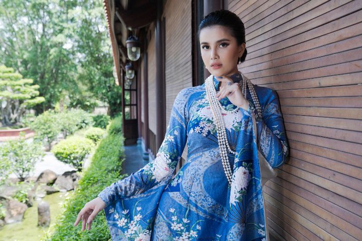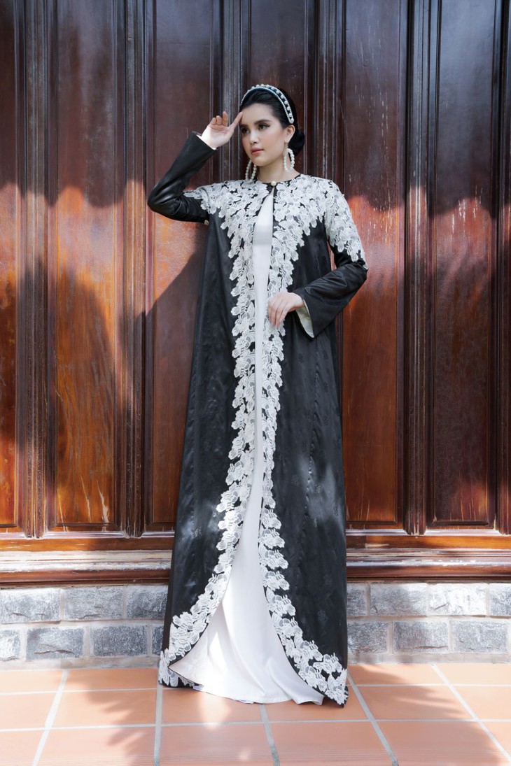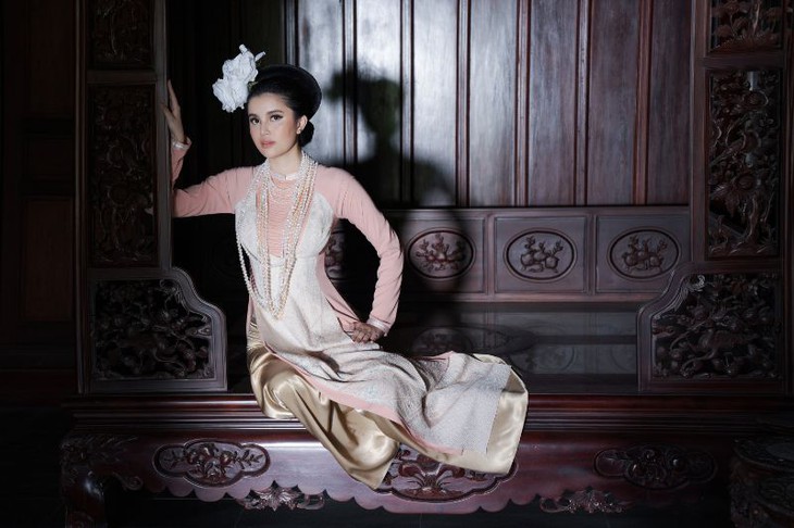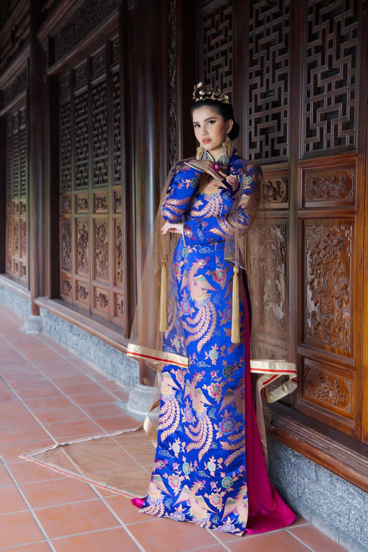 Hoa hậu Ngân Anh và á hậu Diệu Thủy trong trang phục áo dài Võ Việt ChungNTK Võ Việt Chung đã dành thời gian tìm hiểu về nét đặc trưng văn hóa hai miền Nam Bắc và chuyển tải thông điệp qua tà áo dài với chiếc áo trong - áo ngoài, đi kèm với đó là khăn vấn, trâm cài tóc, hoa tai.