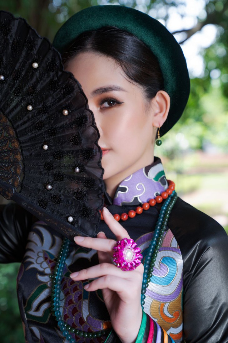 Điểm nhấn không kém đó là phần thể hiện của hai người đẹp Hoa hậu Ngân Anh và á hậu Diệu Thủy - hai người đẹp sở hữu nhan sắc đậm chất Á đông, dịu dàng, e ấp.