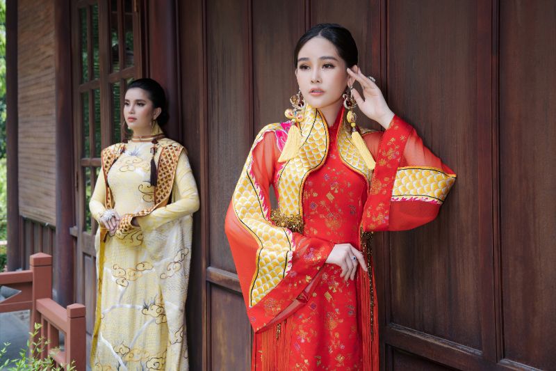 Những mẫu thiết kế trong bộ sưu tập khắc họa rất rõ phong cách cung đình với những họa tiết rồng, hoa sen… cùng sự tươi mới của màu sắc khiến cho BST cực kỳ phù hợp với không khí du xuân.