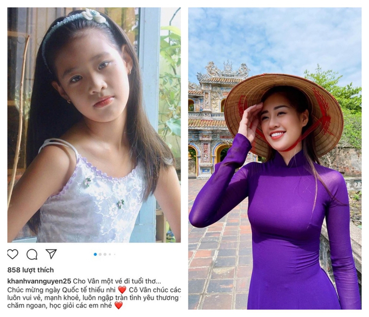 Hoa hậu Khánh Vân cực đáng yêu và nữ tính dù lúc bé hay đã trưởng thành.