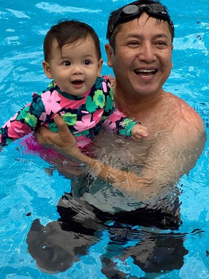NSƯT Chí Trung đưa cháu nội đi bơi nhân Quốc tế Thiếu nhi.