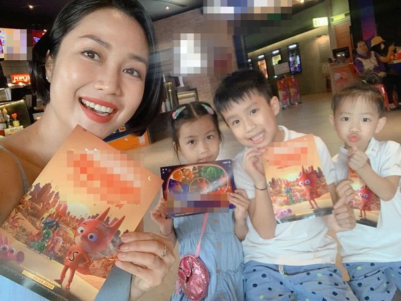 Ốc Thanh Vân tranh thủ đưa các con đi xem phim hoạt hình tại rạp chiếu phim.