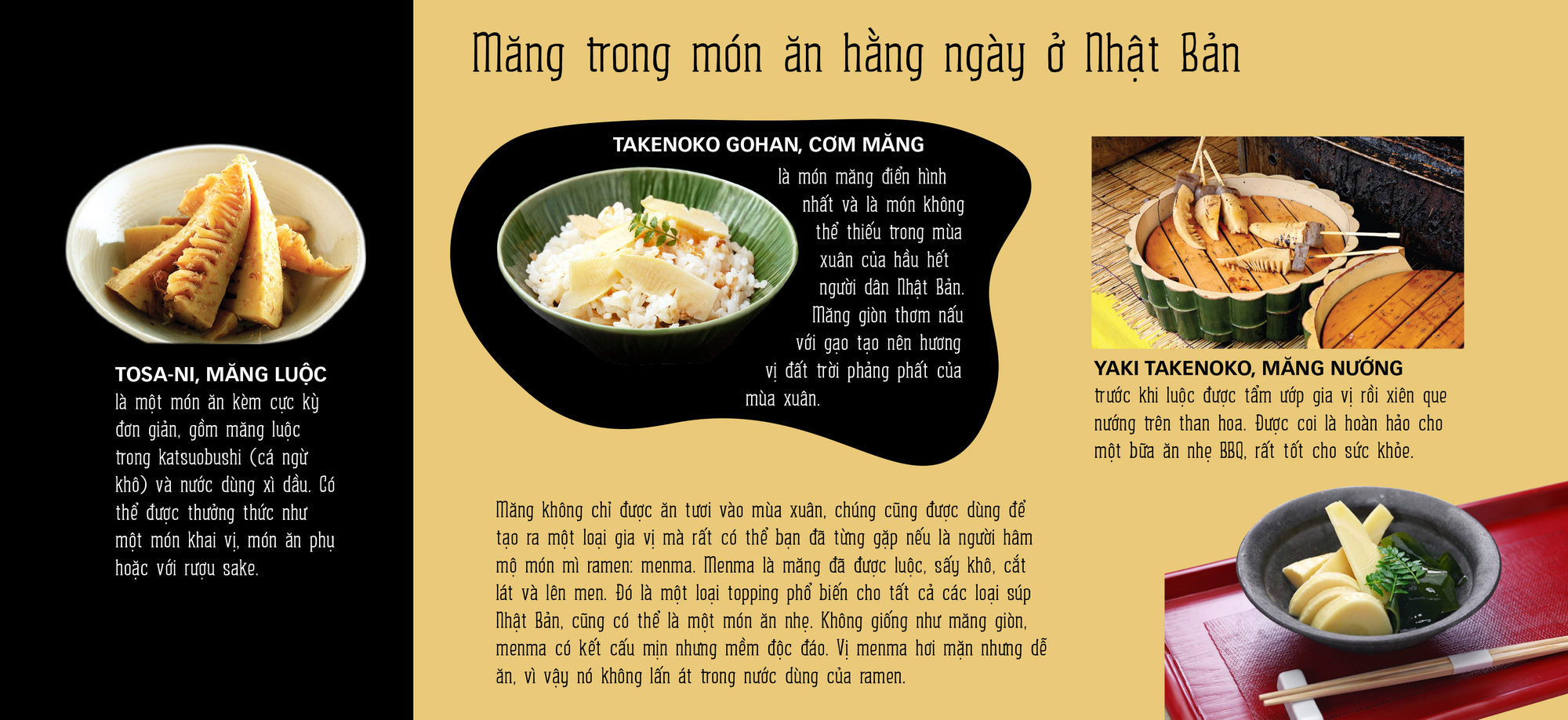 Takenoko trong tiếng Nhật là măng tre, là một trong nhiều loại thực phẩm theo mùa, một đặc trưng ở xứ Phù Tang. Lịch truyền thống của Nhật Bản, đánh dấu sự trôi qua của các mùa và những thay đổi trong thế giới tự nhiên thông qua các tên, lấy theo Trung Quốc, được đặt cho các thời điểm khác nhau trong năm.