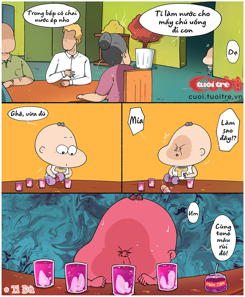 Thằng Tí đãi khách nước ép nho