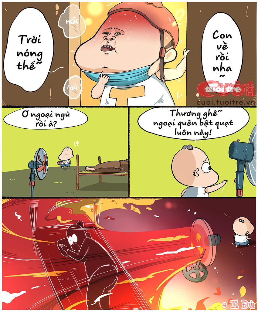 Thằng Tí giúp ngoại vượt qua cái nóng 40 độ C