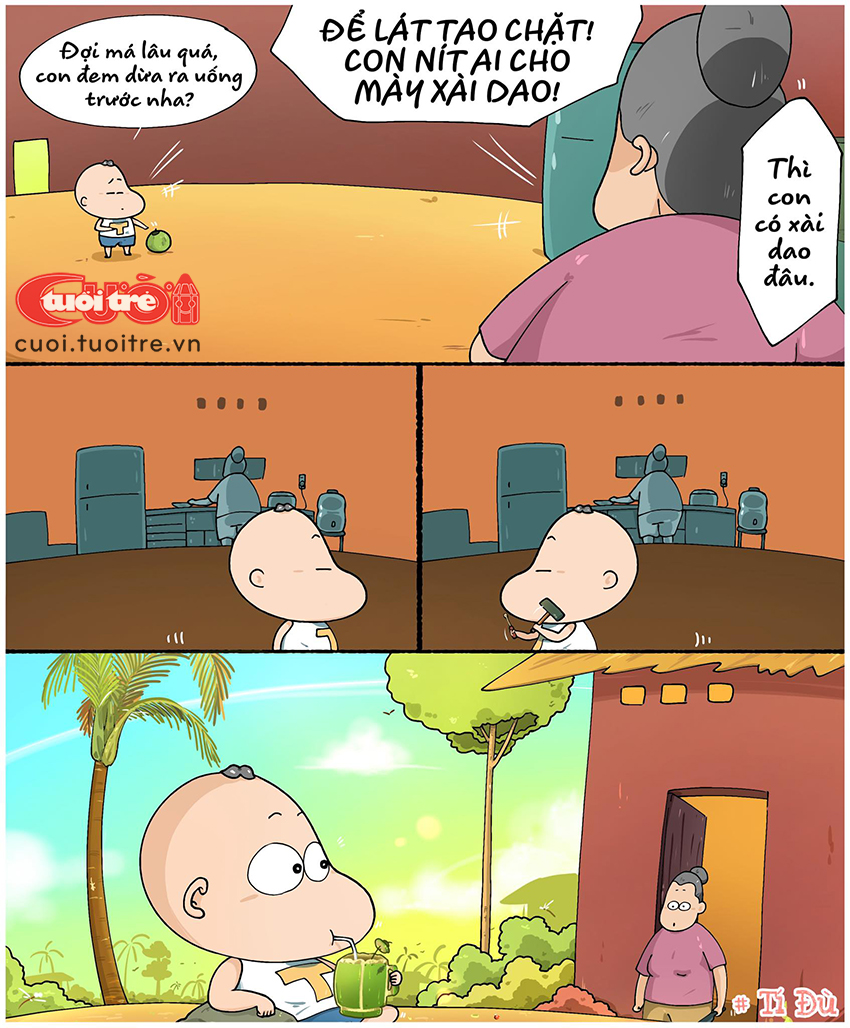 Thằng Tí uống nước dừa