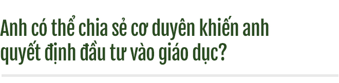 Sau nhiều trải nghiệm, tôi cảm nhận được công việc khiến tôi hạnh phúc nhất là làm giáo dục. Làm một người thầy là việc tự nhiên nhất với tôi, là việc tôi thấy thỏa mãn nhất với trái tim của tôi. Cho nên, quyết định đầu tư vào giáo dục là một chuyện rất tự nhiên.