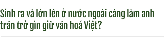 Dù ở đâu thì tôi vẫn là người Việt Nam, mỗi một ADN trên người tôi đều từ nguồn gốc Việt Nam. Dù sống ở nước ngoài nhưng ba mẹ tôi luôn duy trì những nề nếp truyền thống, phong tục tốt đẹp của người Việt. Lâu dần, những điều đó thấm sâu vào tâm hồn tôi tự nhiên như hơi thở.
