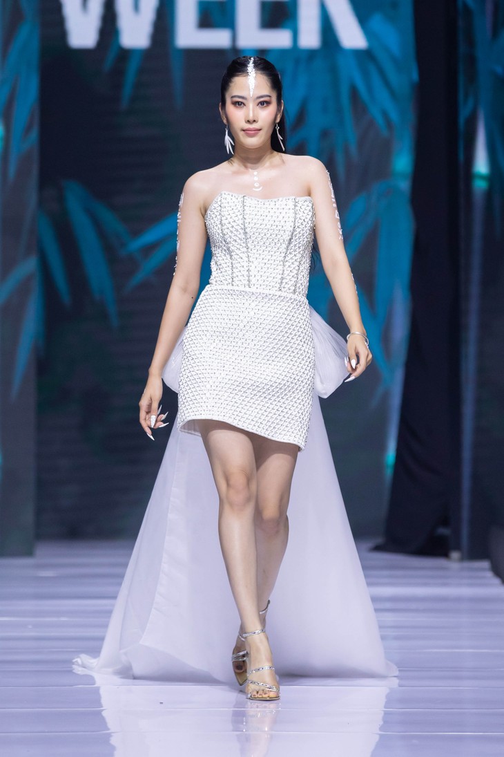 Góp mặt trình diễn bộ sưu tập Trúc còn có hoa hậu Khánh Vân, hoa hậu Hoàng Dung, người mẫu Nam Em, Cẩm Hà, TikToker Lê Bống, diễn viên Hải Triều…