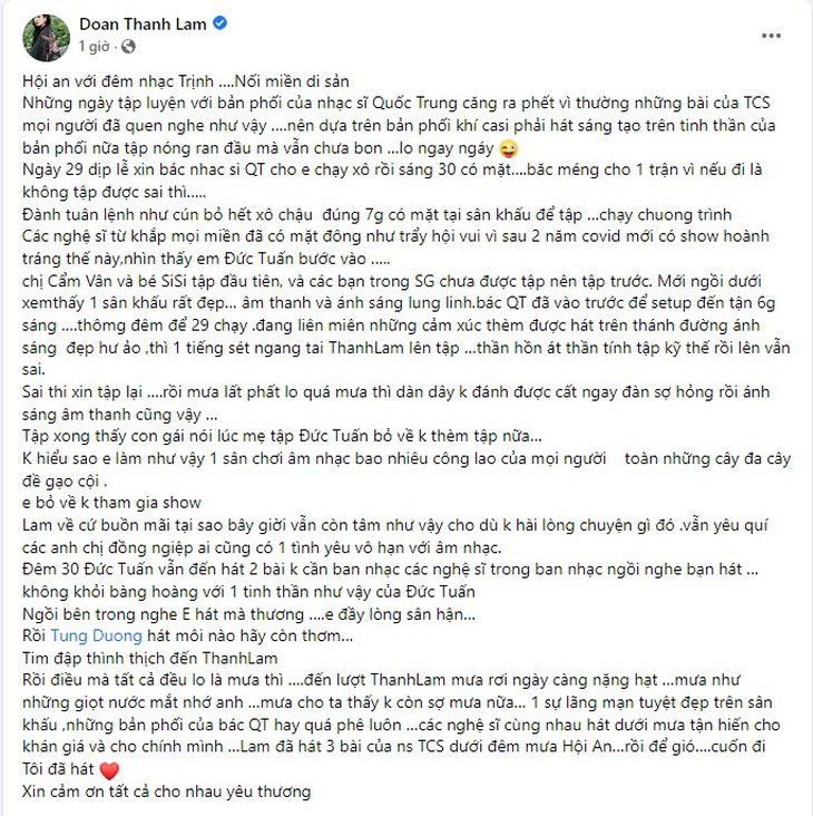 Thanh Lam, Tùng Dương chỉ trích Đức Tuấn bỏ tập đêm nhạc Trịnh