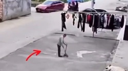 Giật mình khi thấy đèn vàng chuyển sang đỏ, nam thanh niên thắng gấp xe máy và ngã lộn nhào xuống đường.