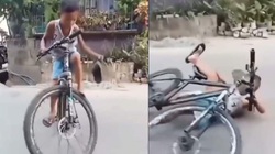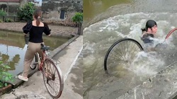 Nam thanh niên chạy xe máy vào cua bất ngờ mất lái ngã nhào xuống ao khiến nhiều người xem phì cười.