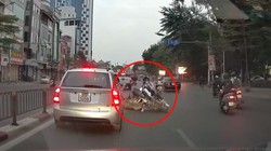 Sau khi chắp tay xin lỗi tài xế ô tô vì chạy xe máy ẩu, nam thanh niên tiếp tục lái xe không tập trung và lao vào vỉa hè.