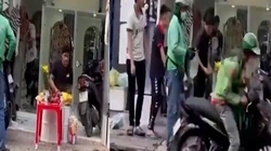 Sau khi giật được con gà cúng, người phụ nữ quay lại cướp luôn miếng heo quay trên tay nam thanh niên nhanh như một cơn gió.