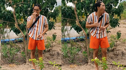 Thanh niên nhăn mặt vì bị bạn dụ ăn xoài chua