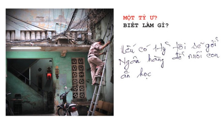 TTCT - Đây có lẽ là một trong những dự án hiếm hoi tập hợp những người chụp ảnh trẻ tuổi khắp ba miền Việt Nam và Pháp để cùng cảm nhận về TP.HCM qua ống kính. Ẩm thực đường phố - Delphine Maury Nếu như những bạn trẻ sống tại TP.HCM phản ảnh thành phố ở góc độ mưu sinh, vẫn còn lắm những cơ cực, thì các tay máy lần đầu tiên đến TP.HCM cảm thấy choáng ngợp bởi nhịp sống tấp nập và những màu sắc mà họ “nhìn” ra từ đó. Như Đỗ Mạnh Cường (Hà Nội) với bộ ảnh “Thần tài” phản ảnh sự năng động của người bán vé số mặc 12 bộ trang phục theo sự kiện để thu hút người mua. Cũng đến từ Hà Nội, Thùy Tiên lại thấy vẻ thân thiện của thành phố qua chia sẻ của người dân trên những tấm postcard. Gérald Debiard và Delphine Maury đến từ Pháp thì tìm hai “đặc sản” là thức ăn đường phố và chợ Bình Tây. Còn Thuận Thắng thì nhìn thành phố với chút châm biếm qua bộ ảnh “Vợ tôi ở đâu?” chụp những người đi đường che khẩu trang kín mít. Người bán vé số tự làm mới mình bằng những trang phục theo sự kiện để thu hút người mua - Đỗ Mạnh Cường Mua bán tấp nập ở chân cầu thang bên trong chợ Bình tây - Gérald Debiard “Vợ tôi ở đâu?” hay câu chuyện về khẩu trang che kín - Thuận Thắng Những màu sắc nhân văn ở một ngôi trường dành cho người khiếm thị - Nguyễn Ly TP.HCM là nơi thú vị để kiếm sống, kể cả trong một không gian làm việc rất hẹp - Mai Trâm Tags: Nhiếp ảnhThành phốTRONG MẮT NGƯỜI TRẺCuộc sống mưu sinh