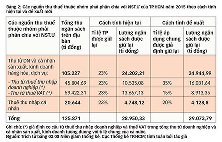 TTCT - Đề xuất cắt giảm tỉ lệ thu ngân sách được giữ lại của TP.HCM từ mức 23% xuống còn 18% cho giai đoạn 2017-2020 đang tạo ra những quan ngại về khả năng duy trì sự phát triển bền vững trong tương lai không chỉ của TP.HCM. Chuyên gia e ngại nếu bị cắt bớt ngân sách, TPHCM sẽ thiếu tiền đầu tư cho phát triển.Trong bài viết này tôi không tập trung vào phân tích con số cắt giảm 5% hay 3% là hợp lý hay không hợp lý. Tôi cho rằng phản ứng này của TP.HCM là hệ quả tất yếu của cơ chế phân chia ngân sách bất hợp lý giữa chính quyền trung ương và địa phương của Việt Nam hiện nay. Việc làm sáng tỏ điều này và đưa ra giải pháp có lẽ có ý nghĩa quan trọng hơn.Nguyên tắc phân chia ngân sách kiểu Việt Nam hiện nayTheo Luật ngân sách 2015, ngân sách trung ương (NST.Ư) và ngân sách địa phương (NSĐP) đều có một số nguồn thu được hưởng 100%. Ngoài ra, NST.Ư và NSĐP cùng chia sẻ một số nguồn thu khác.Cụ thể, NST.Ư được phép giữ lại 100% các khoản thu liên quan đến xuất nhập khẩu, thu viện trợ, các khoản thu liên quan đến dầu mỏ, thu từ các hoạt động của DNNN. NSĐP được phép giữ lại 100% các khoản thu liên quan đến thuế tài sản, thuế môn bài, thuế liên quan đến nhà đất, một số loại phí, lệ phí từ dịch vụ địa phương, phí phương tiện, phí cầu đường...Các khoản thu mà NST.Ư và NSĐP chia sẻ là thuế giá trị gia tăng hàng sản xuất trong nước, thuế thu nhập doanh nghiệp (TNDN), thuế thu nhập cá nhân (TNCN) và thuế bảo vệ môi trường.Theo ước tính thu ngân sách nhà nước (NSNN) năm 2015, các khoản thu NST.Ư hưởng 100% có giá trị ước khoảng 305,7 nghìn tỉ đồng, chiếm 30,7% tổng thu NSNN; các khoản thu NSĐP hưởng 100% có giá trị khoảng 158,9 nghìn tỉ đồng, chiếm 15,9% tổng thu NSNN. Phần còn lại trị giá 532,3 nghìn tỉ đồng, chiếm tới 53,4% được chia sẻ giữa NST.Ư và NSĐP (chi tiết xem bảng 1). Thoạt nhìn việc phân chia nguồn thu giữa NST.Ư và NSĐP của Việt Nam tương tự các nước. Tuy nhiên, sự khác biệt của Việt Nam so với hầu hết quốc gia khác nằm ở cách phân chia tỉ lệ phần trăm giữa NST.Ư và NSĐP đối với một số khoản thu thuộc nhóm đối tượng chia sẻ.Với hầu hết các nước, việc phân chia ngân sách đều dựa trên nguyên tắc xác lập một tỉ lệ phân chia cố định cho từng loại thuế thuộc nhóm chia sẻ và áp dụng cho tất cả các địa phương.Chẳng hạn, Trung Quốc quy định tỉ lệ chia sẻ phân biệt giữa các loại thuế giữa NST.Ư và NSĐP như thuế giá trị gia tăng (VAT) 5% và 25%; thuế kinh doanh 3% và 97%; thuế chứng khoán 97% và 3%; thuế TNCN 60% và 40%; thuế TNDN 60% và 40%. Indonesia quy định tỉ lệ phân chia nguồn thu giữa NST.Ư và NSĐP đối với thuế TNCN là 80% và 20% (trong đó tỉnh 8%, huyện 12%); thuế bất động sản 9% và 91%...Trong khi đó, Việt Nam lại phân chia dựa trên việc đưa ra tỉ lệ phân chia áp dụng chung đối với tất cả các khoản thu thuộc nhóm chia sẻ thuế và được xác định riêng cho từng tỉnh với từng thời kỳ (thời kỳ ổn định ngân sách).Chẳng hạn, TP.HCM được giữ lại 26% các khoản thu thuộc nhóm này trong giai đoạn 2007-2010 và giảm còn 23% ở giai đoạn 2011-2015; trong cùng thời kỳ đó Quảng Ninh được giữ lại lần lượt là 76% và 70%.Trên thực tế, cả nước trong giai đoạn 2011-2015 chỉ có 13 tỉnh thành là phải chia lại cho NST.Ư. Các tỉnh, thành khác được giữ lại 100% các khoản này vì ngay cả khi giữ thì vẫn không đủ chi và phải bổ sung thêm từ NST.Ư. Năm 2015, khoản thu bổ sung từ NST.Ư cho các tỉnh, thành chiếm 40-41% tổng ngân sách địa phương. Phần lớn con số này được điều tiết từ 13 tỉnh thặng dư ngân sách.Hiệu ứng bi kịch tài nguyên chungCách phân chia hiện tại tạo ra hiệu ứng bi kịch tài nguyên chung (The tragedy of the commons), là cội nguồn khiến các tỉnh, thành tìm mọi cách tăng chi để giảm đóng góp ngân sách cho T.Ư. Không chỉ các tỉnh thâm hụt ngân sách tìm cách tăng chi để được bổ sung thêm ngân sách từ T.Ư, mà ngay cả các tỉnh thặng dư ngân sách cũng sẽ tìm cách tăng chi để giảm tỉ lệ đóng góp.Cuộc đua tăng chi để giảm tỉ lệ đóng góp tất yếu dẫn đến bội chi NSNN ngày càng tăng. Nợ công sẽ ngày một tăng nếu tiếp tục duy trì cách phân chia này.Không chỉ Hà Nội hay TP.HCM mong muốn được giữ lại NSĐP nhiều hơn để chi cho phát triển với lý do là thủ đô hay đầu tàu kinh tế, mà những tỉnh, thành nhỏ hơn như Đà Nẵng, Bình Dương hay Quảng Ninh cũng muốn giữ lại càng nhiều càng tốt để phát triển cơ sở hạ tầng cho địa phương mình.Để cân đối ngân sách giữa các địa phương, một số tỉnh thành sẽ bị “ép” đóng góp cho NST.Ư. Điều này không ít thì nhiều sẽ khiến những tỉnh, thành này có cảm giác bất bình đẳng.Trong khi đó Việt Nam hoàn toàn có thể chuyển sang áp dụng việc áp dụng tỉ lệ cứng đối với các sắc thuế chia sẻ cho tất cả tỉnh, thành như đa số các nước trên thế giới áp dụng mà 