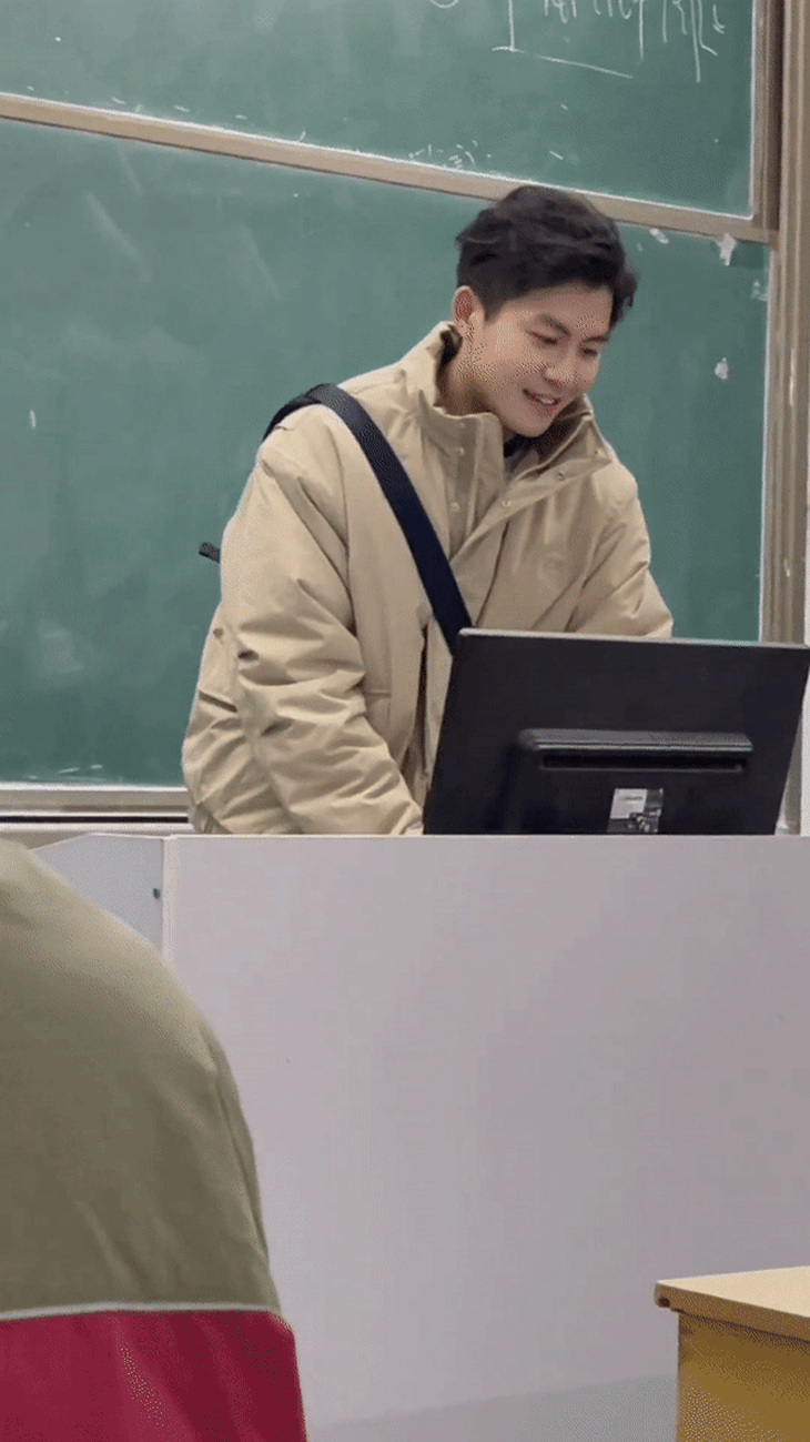 Được biết, thầy giáo tên là Vương Diệc Sơn. Dù đã 32 tuổi song vẻ ngoài của thầy chẳng khác gì sinh viên trong trường, thậm chí còn "đẹp vượt mặt".