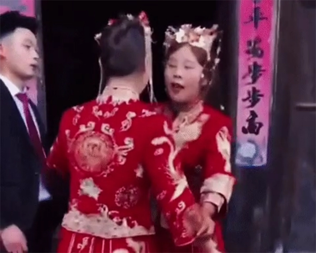 Chú rể "3 phần bất lực, 7 phần cam chịu" trước 2 cô dâu trong đám cưới của mình. Được biết, 1 trong 2 cô dâu chính là bạn gái cũ của chú rể. Biết tin chàng trai mình từng yêu chuẩn bị lên xe hoa, cô gái đã chọn đúng thời điểm hôn lễ để "đón lõng" và xuất chiêu. Cô liên tục khóc lóc, năn nỉ anh chàng mau hủy hôn và cưới mình, bất chấp sự tò mò và ngỡ ngàng của mọi người xung quanh.