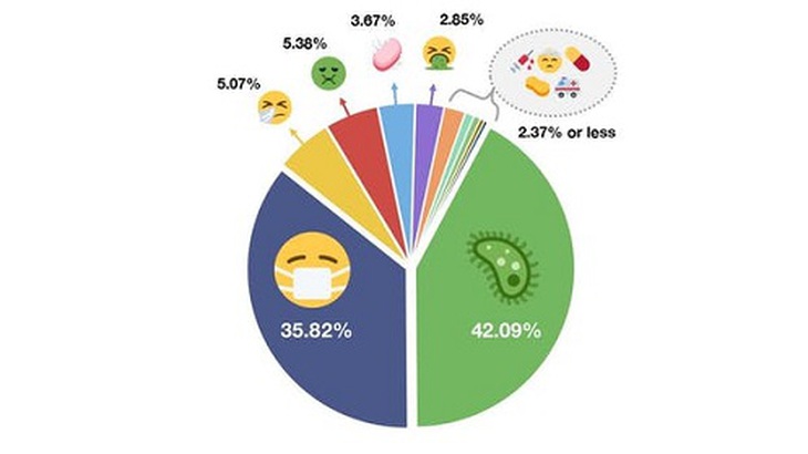 Theo dữ liệu từ trang web Emojipedia, những cách phổ biến nhất để nói về covid-19 bao gồm sử dụng emoji vi sinh vật, nhưng phổ biến hơn cả là khuôn mặt đeo khẩu trang.