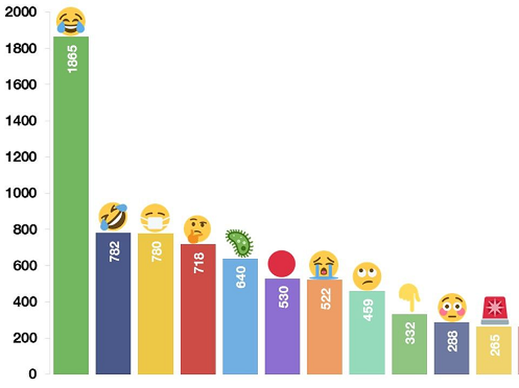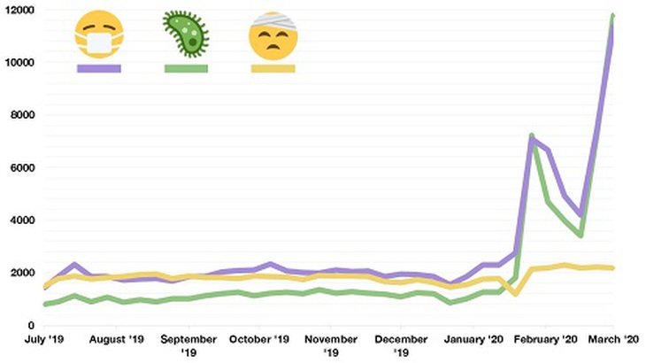 Một mẫu thống kế gần 50.000 tweet trên Twitter từ đầu tháng 3 tới nay, được Emojipedia phân tích, chỉ ra rằng 5 emoji gắn chặt chẽ nhất với covid-19 chính là: