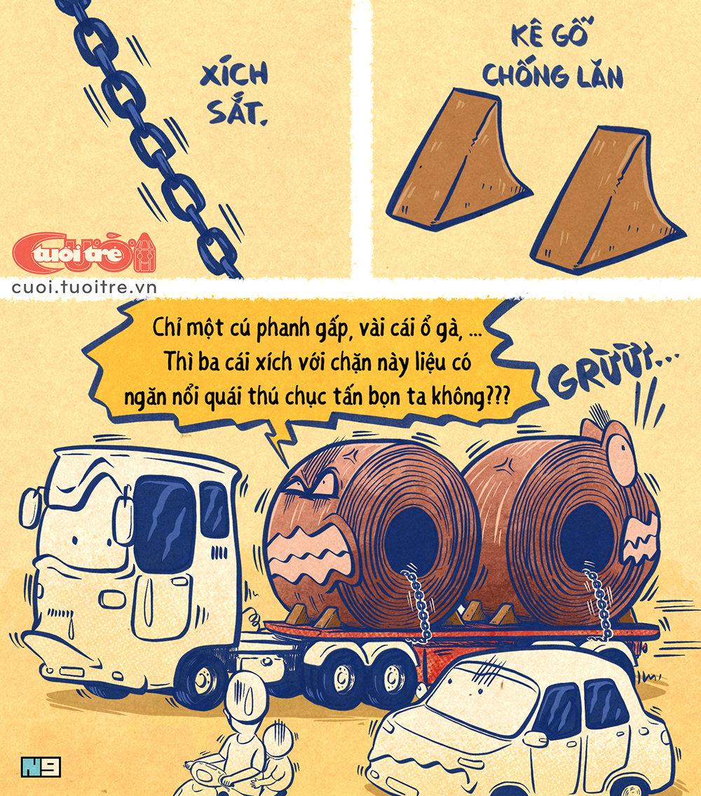 Thép cuộn trên xe container là quái thú rình rập người đi đường