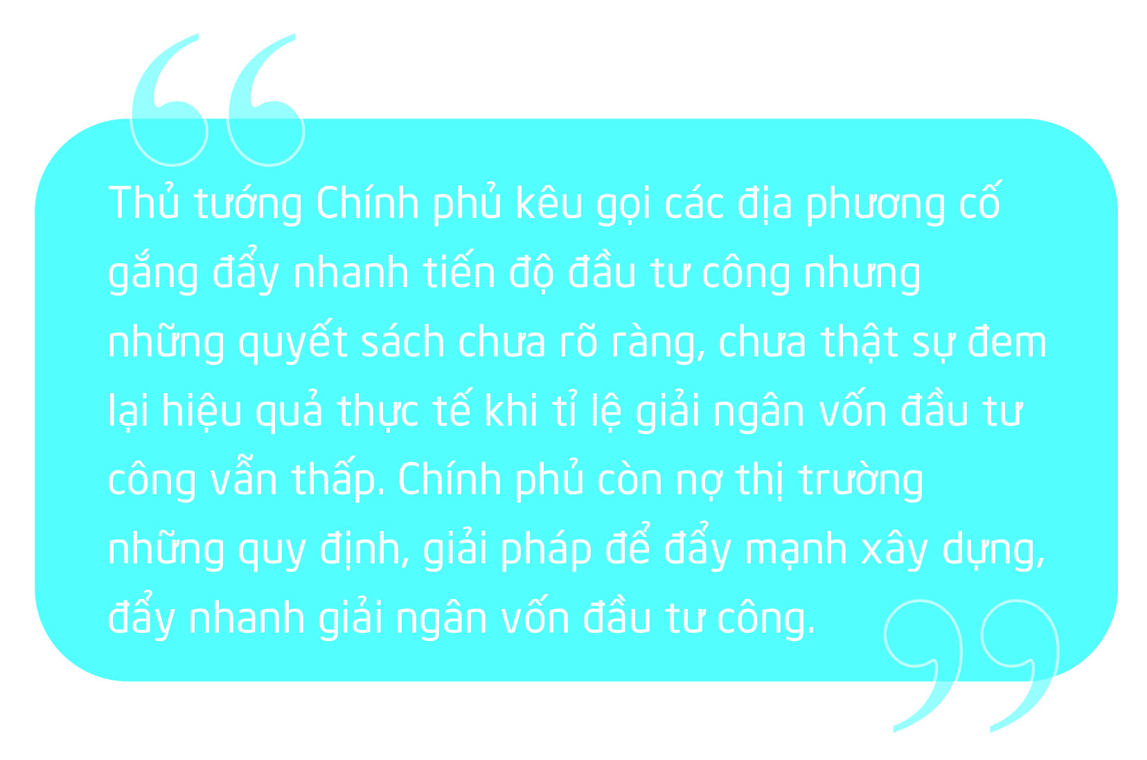Tuy nhiên, tốc độ giải ngân đầu tư công tổng thể đến hết tháng 10-2022 chỉ đạt 46% kế hoạch năm. Nhiều dự án hạ tầng chậm trễ, hẹn tiến độ nhiều năm như metro Bến Thành - Suối Tiên (TP.HCM), dự án đường vành đai 2 (TP.HCM), dự án cầu Bình Khánh nối huyện Nhà Bè và Cần Giờ, dự án cao tốc Bến Lức - Long Thành chậm tiến độ…
