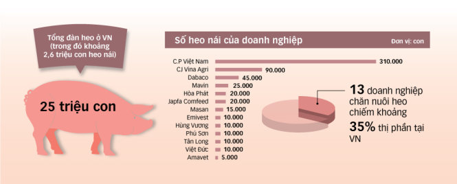 TTCT - Lần đầu tiên trong lịch sử, VN cho nhập khẩu heo sống về để giết thịt nhằm tăng nguồn cung trong nước, qua đó bình ổn thị trường và kéo giá heo trong nước xuống. Tuy nhiên, theo nhiều chuyên gia, đây chỉ là giải pháp tình thế. Về lâu dài vẫn phải tăng nguồn cung thịt heo trong nước về bằng trước khi có dịch bệnh thì mới có thể đưa giá heo về mức ổn định lâu dài. Ai mới thực sự chi phối ? Ông Huỳnh Thành Vinh, giám đốc Sở NN&PTNT tỉnh Đồng Nai - một trong những địa phương có đàn heo lớn nhất nước, cho biết toàn tỉnh hiện có khoảng 2,1 triệu con heo. Trong đó, chăn nuôi trang trại chiếm hơn 90% (50-60% trong số này của doanh nghiệp (DN) đầu tư nước ngoài), chăn nuôi nhỏ lẻ chiếm gần 10% tổng đàn với khoảng 6.150 hộ chăn nuôi. Còn theo Chi cục Chăn nuôi và thú y Đồng Nai, tổng đàn heo của các DN, hợp tác xã (HTX) trên địa bàn là khoảng 1,1 triệu con. Trong đó, tổng đàn của 8 DN có vốn đầu tư nước ngoài là 1,03 triệu con (chiếm 94%), tổng đàn của 9 DN trong nước và HTX là 65.000 con (chiếm 4%). Đứng đầu DN FDI về số lượng là Công ty cổ phần chăn nuôi CP Việt Nam với tổng đàn trên 550.000 con, tiếp đến là Công ty TNHH CJ Vina Agri với tổng đàn trên 180.000 con. Sáu DN còn lại gồm Japfa, Velmar, Sunjin, Cargill, Làng Sen và Menon có số lượng từ 15.000 - 100.000 con. Trong khi đó, Công ty cổ phần Nông súc sản Đồng Nai đứng đầu DN trong nước và HTX, với tổng đàn khoảng 30.000 con. Các DN, HTX còn lại chỉ có từ 150 - 10.000 con. Mỗi ngày, các trang trại, cơ sở chăn nuôi heo trên địa bàn cung ứng khoảng 8.500 - 9.000 con heo thịt ra thị trường. Trong đó, có khoảng 6.000 con heo thịt làm giấy kiểm dịch xuất đi thịt trường TP.HCM, Bình Dương và Bà Rịa - Vũng Tàu. Còn khoảng 2.500 - 3.000 con được giết mổ tại địa phương, sau đó phân phối thịt heo cho thị trường trong và ngoài tỉnh tiêu thụ. Dù vậy, ông Phạm Nhất Huy - giám đốc HTX dịch vụ chăn nuôi Xuân Phú (huyện Xuân Lộc, Đồng Nai) - nhận định khả năng tham gia điều tiết giá của các DN tại Đồng Nai không lớn. Ông Huy phân tích: hiện Công ty cổ phần chăn nuôi CP Việt Nam có tổng đàn lớn nhất toàn tỉnh, trường hợp DN này ngưng xuất ra thị trường, nguồn cung thiếu hụt sẽ đẩy giá heo lên cao. Ngay cả khi DN này tăng xuất, giá heo cũng chỉ có thể giảm nhẹ. “Họ thường xuất bán heo hơi trọng lượng 120kg/con. Khi muốn tăng xuất, họ sẽ bán heo 110kg/con, dần xuống 100kg/con và 90kg/con. Ba đợt ra thị trường như vậy cũng chỉ kéo giảm giá heo hơi xuống tối đa 5.000 - 6.000 đồng/kg. Nhưng chỉ cần công ty này ngừng cung 3-4 ngày, giá heo lập tức vượt giá ban đầu. Cũng theo ông Huy, trong đợt dịch tả heo châu Phi vừa qua, Công ty CP Việt Nam cũng bị thiệt hại khá nặng nên lượng heo chỉ đủ cung cấp đều đều giữ giá, khó có thể đưa đồng loạt ra thị trường để kéo giảm giá. Đàn heo của các DN khác chiếm thị phần không lớn nên không thể tác động đến giá cả trên thị trường. Và các DN, trang trại lớn thường “nhìn” vào Công ty CP Việt Nam để tăng hay giảm số lượng xuất ra. Các lò mổ gia súc tập trung cũng khó gom đủ nguồn heo do thị trường khan hiếm. Trong ảnh: nhân viên lò mổ gia súc tập trung Thy Thọ chuẩn bị đơn hàng cho một chuỗi siêu thị. Ảnh: A LỘC Phải theo quy luật cung - cầu Rất nhiều cuộc họp, rất nhiều giải pháp đã được Chính phủ đưa ra để điều tiết giá thịt heo. Các DN chăn nuôi lớn thậm chí còn đồng loạt cam kết xuất bán heo hơi với giá 70.000 đồng/kg. Nhưng mức giá trên thị trường chỉ giảm nhẹ rồi tăng trở lại. Người tiêu dùng vẫn phải mua thịt heo với giá đắt đỏ. Bởi thế, nói về giải pháp bình ổn thị trường thịt heo, đa số chuyên gia, chủ cơ sở chăn nuôi heo có nhiều năm kinh nghiệm đều cho rằng mấu chốt nằm ở quy luật cung - cầu. Khi thịt heo khan hiếm, giá ắt bị đẩy lên cao; khi thịt heo đủ cung cấp cho nhu cầu của người tiêu dùng, giá sẽ tự động hạ nhiệt. Ông Nguyễn Trí Công - chủ tịch Hiệp hội Chăn nuôi Đồng Nai - cho rằng cốt lõi của vấn đề là nguồn cung heo bị thiếu hụt nghiêm trọng do dịch tả heo châu Phi. Ngoài 6 triệu con bị tiêu hủy (tính đến tháng 5-2020) theo số liệu thống kê chính thức, còn rất nhiều heo bị bệnh ở các công ty chăn nuôi lớn phải hủy mà không được khai báo. Không những thế, trong số heo bị tiêu hủy, phần lớn đàn heo nái trong các hộ nuôi nhỏ lẻ đã mất, việc khôi phục tốn nhiều thời gian. Điều này không khác gì tình hình tại Trung Quốc, sau khi dịch bệnh xảy ra một năm thì mức độ thiếu heo trầm trọng nhất. Và dù dịch bệnh tại Trung Quốc diễn ra cách VN nửa năm và không rộng trên toàn quốc, nhưng đến nay giá heo hơi tại nước này cũng vẫn ở mức trên 100.000 đồng/kg. 13 DN chăn nuôi heo quy mô lớn nhất của VN chỉ chiếm 35% thị phần, 65% còn lại là của các DN nhỏ, trang trại, hộ nông dân - nơi khó chủ động được v