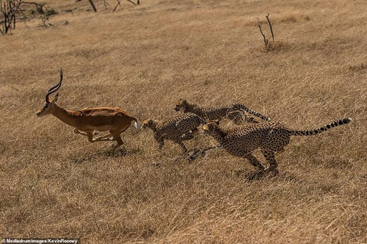 Cuộc tẩu thoát ngoạn mục này được nhiếp ảnh gia kiêm kỹ sư điện hàng không từ Cheltenham (Anh) Kevin Rooney (53 tuổi) chia sẻ qua chuỗi ảnh của ông tại Khu bảo tồn Naboisho, Kenya.