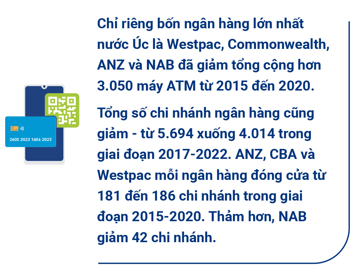 Tại Úc, báo Sydney Morning Herald cho biết người dân cũng ngày càng khó tìm thấy cây ATM hơn trước đây.