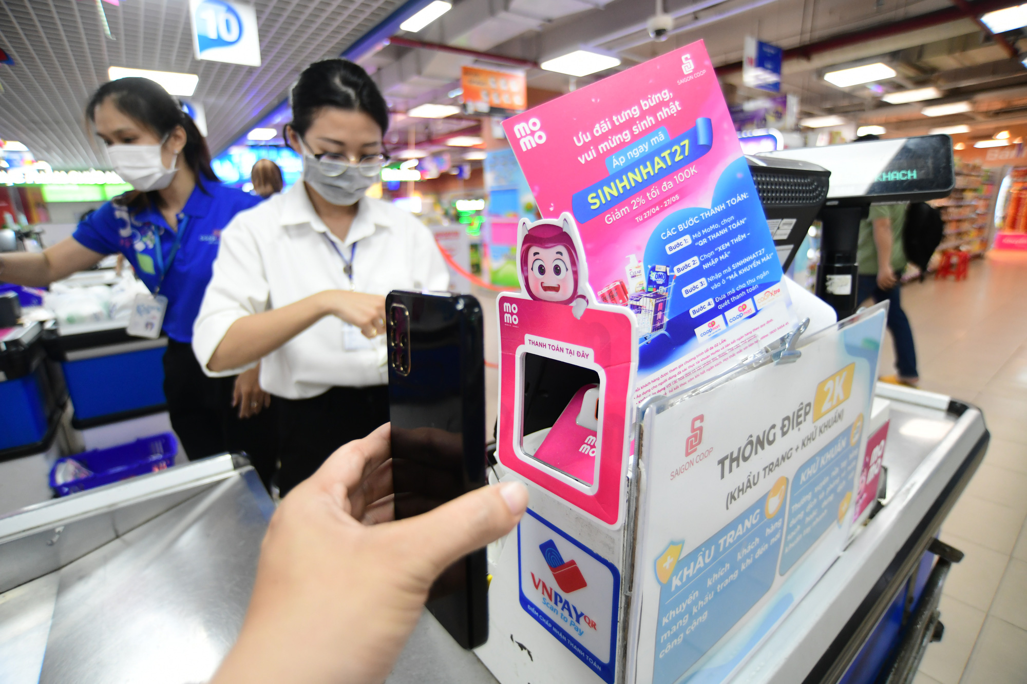 Khách hàng thanh toán tiền bằng MoMo tại siêu thị Co.opMart Rạch Miễu, quận Phú Nhuận, TP.HCM - Ảnh: QUANG ĐỊNH