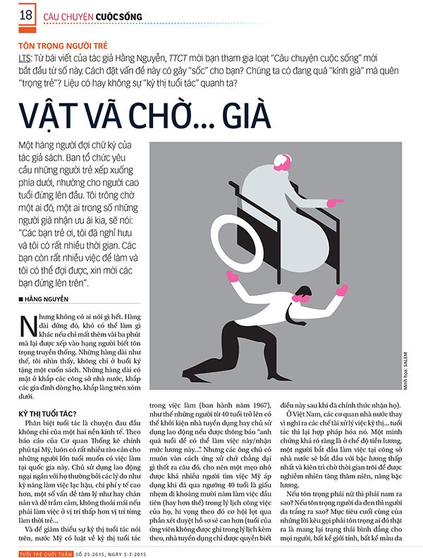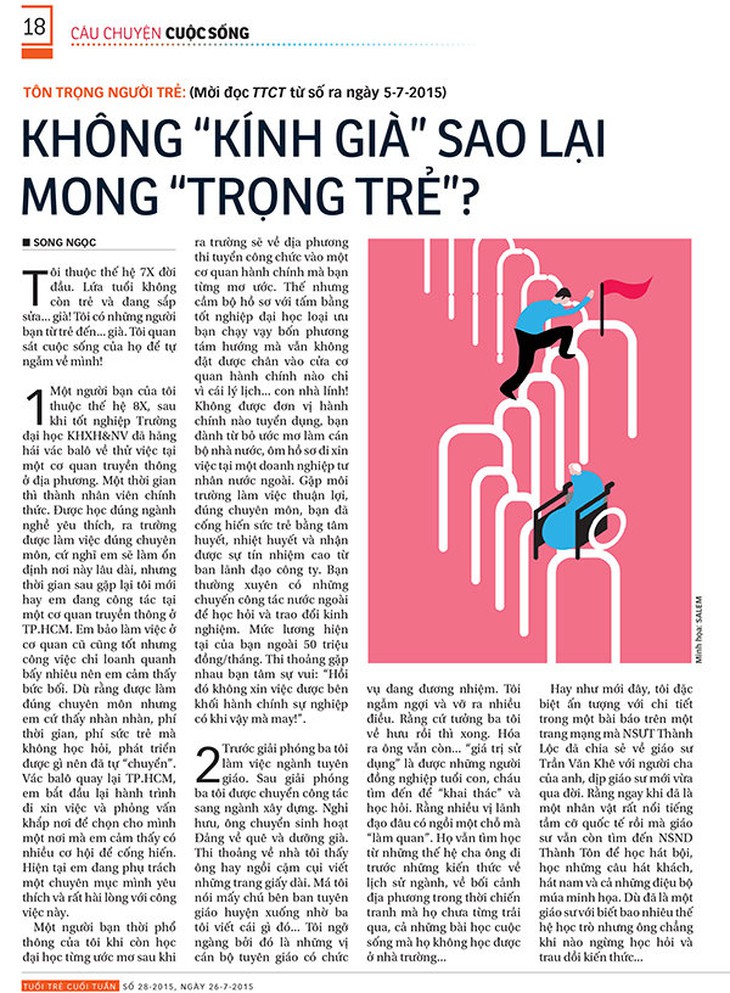 TTCT- LTS: Sau gần hai tháng (xem TTCT từ số 25, ra ngày 5-7-2015), những ý kiến tham gia loạt Câu chuyệncuộc sống “Tôn trọng người trẻ” đã nhấn mạnh sự bình đẳng tuổi tác cần thiết cho phát triển, khi Việt Nam chẳng bao lâu sẽ bước qua giai đoạn dân số vàng. Bên cạnh đó là nỗ lực của chính những người trẻ để sự bình đẳng này thật sự là một ghi nhận, tôn trọng của xã hội hơn là sự chiếu cố. Kết loạt diễn đàn này, TTCT mời bạn đọc xem ý kiến của TS xã hội học Lê Thanh Hải, từng làm việc ở Ba Lan và nay là ở Anh. Tôi không thích được sinh viên gọi là thầy, bởi vì thói quen khi đứng lớp từ thời làm nghiên cứu sinh ở Ba Lan. Sau này, khi nhận dẫn luận văn cho sinh viên ở Việt Nam thì việc đầu tiên tôi làm là yêu cầu họ không gọi tôi là thầy, bởi vì nếu hoàn tất chương trình học thì họ trở thành đồng nghiệp, còn nếu học không xong thì cũng không ngại bị người lười biếng nhận vơ là học trò. Điều này càng hợp lý hơn khi tôi tổ chức khóa bổ túc kiến thức cho một chủ công ty một phòng ban nào đó, vì sau khi nắm bắt những nguyên tắc cơ bản nhất thì chính họ mới là thầy để tôi học cách vận dụng khoa học vào cuộc sống để tạo ra sản phẩm và lợi nhuận. Bình đẳng tuổi tác- cơ chế của nền văn minh Khi xã hội còn trong cơ chế sản xuất nông nghiệp truyền thống thì người già - tích lũy và lưu truyền kinh nghiệm theo năm tháng - giữ tiếng nói quyết định. Nhưng lúc xã hội đã tiến vào giai đoạn công nghiệp hóa và nhất là công nghệ hóa như hiện nay, thì khả năng xử lý nhiều nguồn thông tin khác nhau và cập nhật kiến thức mới là chìa khóa để tồn tại và phát triển. Khi đó thế hệ trẻ trở thành người được trân trọng và tạo điều kiện để đưa thế giới phát triển. Bill Gates với công nghệ phần mềm hay Mark Zuckerberg với kỹ thuật mạng xã hội chính là một vài ví dụ tiêu biểu, bên cạnh rất nhiều nhân vật trẻ khác trong đủ mọi ngành nghề đang là mũi nhọn trên thế giới - từ công nghệ vi sinh cho đến kỹ thuật nano, thậm chí ngành chế biến thực phẩm. Nhiều trường đại học ở Anh không ngại mở thêm công ty kinh doanh để tận dụng nguồn chất xám do chính mình đào tạo. Trường đại học và cơ sở kinh doanh rất chú trọng đến cơ cấu thứ bậc bởi vì họ thấu hiểu nhất về hiệu suất công việc hay hiệu quả kinh tế do tái cơ cấu tổ chức đem lại. Ở Anh thời công nghiệp hóa, thay vì để mỗi người công nhân tự lắp ráp từ đầu đến đuôi và trả lương theo bậc thợ tức là bề dày kinh nghiệm theo năm tháng, người ta đã xếp tất cả ngang nhau vào một dây chuyền và kết quả là sản lượng bất ngờ tăng gấp 2.000 lần so với trước. Đó cũng là lý do khiến hãng xe Ford ở Mỹ hạ giá thành xuống đến nỗi người dân bình thường cũng đủ tiền để mua và tạo ra sức đẩy kinh tế cho toàn xã hội. Thay đổi vị trí và sắp xếp lại thứ bậc trong xã hội tất nhiên sẽ bị phản đối nhưng tạo ra giá trị thặng dư cho cộng đồng và luôn là xu thế áp đảo thời phát triển. Những người phụ nữ Anh khi trở thành lực lượng lao động chính thời Thế chiến thứ hai đã nhanh chóng giành vị thế ngang hàng với nam giới trong xã hội. Ngành công nghệ chế biến ở Nhật khi xưa và sau đó là Hàn Quốc đã thu hút rất nhiều lao động nữ và tạo ra thay đổi hoàn toàn về vai trò của người phụ nữ trong xã hội. Đàn ông Hàn Quốc ngày nay rất khó lấy vợ vì phải phấn đấu rất nhiều mới đạt được tiêu chuẩn của phụ nữ Hàn Quốc. Họ đang tìm sang Việt Nam nhưng không lâu nữa sự phát triển của các khu chế xuất và quá trình công nghiệp hóa ở Việt Nam cũng sẽ tạo ra điều tương tự trong quan hệ xã hội. Nhiều người Việt lo lắng với tỉ̉ lệ ly hôn ngày càng cao nhưng điều đó thể hiện sự tự tin của phụ nữ Việt, nhất là những bà mẹ đơn thân nhưng vẫn thành đạt và được kính nể trong xã hội. Một cơ cấu xã hội ngang bằng đang dần hình thành theo nhịp độ phát triển kinh tế và toàn cầu hóa. Từ một sản phẩm phụ của thời công nghiệp hóa, sự bình đẳng trong xã hội nay trở thành tiêu chí của nền văn minh và được cộng đồng quốc tế mở rộng thông qua các loại công ước và liên kết văn hóa. Bên cạnh bình đẳng về giới tính, yêu cầu bình đẳng về tuổi tác cũng đặc biệt được chú trọng. Ngay cả trẻ em cũng phải được tôn trọng quyền không chỉ được học mà còn được vui chơi, không bị ép buộc phải đi theo tôn giáo khác hay văn hóa khác, như quy định trong công ước quốc tế của Unicef. Ở Anh, trẻ em trong các trường mà Unicef công nhận là đạt chuẩn này được thầ̉y cô giáo đối xử như bạn bè, chia sẻ tâm sự để giúp các em biết sống tự lập trong xã hội, hơn là kiểu nạt nộ thị uy bắt học trò lúc nào cũng phải khép nép sợ hãi âu lo. Quen sống trong không khí nặng nề áp đặt trong trường học, c