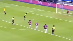 Sau cú sút penalty trúng xà ngang của đối phương, thủ môn đội TX Việt Yên (Bắc Giang) nhảy cẫng lên ăn mừng mà không hay biết quả bóng đang từ từ lăn vào lưới.