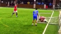 Chàng trai tung cú sút xa với lực bóng bay như tên lửa, khiến thủ môn đối phương chỉ biết đứng chôn chân, nhìn bóng bay vào lưới.