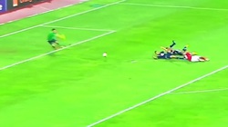 Nữ thủ môn có pha xử lý lóng ngóng vô tình đẩy bóng vào lưới nhà như vận động viên đánh bóng chuyền.