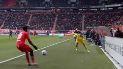 Sau khi nhận đường chuyền về từ đồng đội, thủ môn có pha xử lý chậm chạp để đối thủ áp sát cướp bóng và ghi bàn.