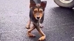 Sau một hồi chơi trò đu quay, chú chó tiếp đất đi loạng choạng như người say rượu.