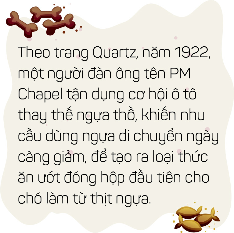 Sản phẩm này có tên là Ken-L Ration, rất phổ biến vào những năm 1930. The Farmer’s Dog ước tính thức ăn đóng hộp cho chó chiếm đến 90% thị phần vào giai đoạn này.