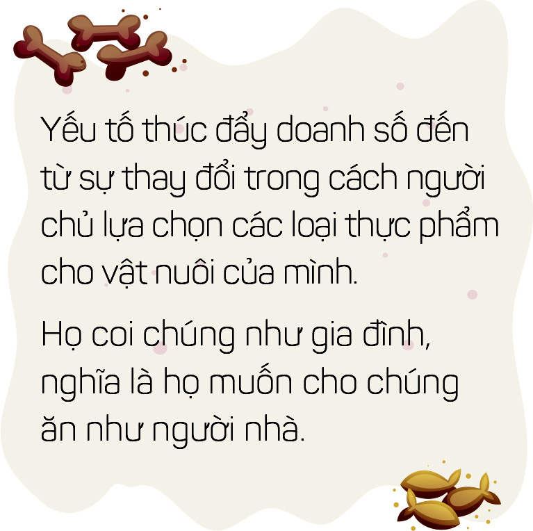 Cũng trong giai đoạn này, người tiêu dùng có xu hướng tìm kiếm các loại thức ăn cao cấp cho thú cưng được tiếp thị bằng những từ ngữ như "tự nhiên" và "dành cho người".