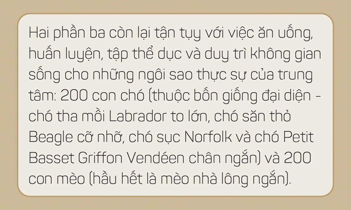 Giữa tất cả các hoạt động huấn luyện, vui chơi, thè lưỡi và vẫy đuôi, những con chó và mèo này đang làm việc chăm chỉ.