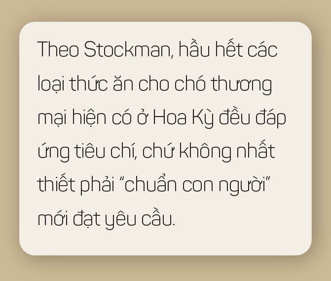 Thức ăn cho thú cưng làm từ nguyên liệu đáp ứng các tiêu chuẩn như thức ăn cho người "không nhất thiết đồng nghĩa với tốt hơn cho con vật và mang lại lợi ích sức khỏe cho chúng", bà nói với The Washington Post.