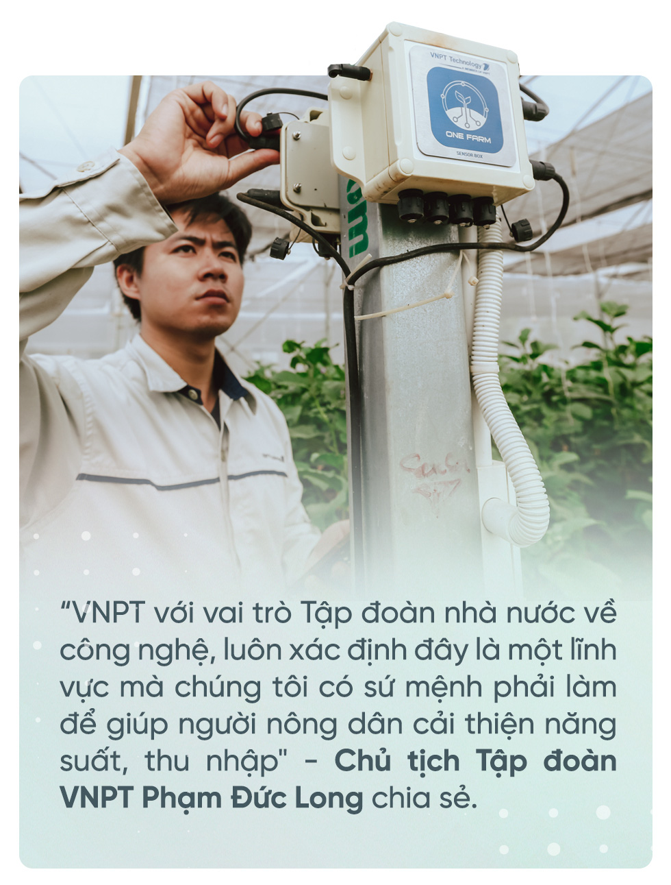 "Chúng tôi kỳ vọng sẽ góp sức xây dựng một ngành nông nghiệp Việt tiên tiến, dựa trên nền tảng ứng dụng các công nghệ 4.0. Khi mà 40% lực lượng lao động trên cả nước đang làm trong lĩnh vực này và đây vẫn là ngành kinh tế mũi nhọn thì việc áp dụng công nghệ để có các sản phẩm nông sản sạch, với chi phí sản xuất hợp lý, tốn ít nhân công sẽ mang lại lợi ích thiết thực cho hàng triệu nông dân Việt Nam. Do đó VNPT với vai trò Tập đoàn nhà nước về công nghệ, luôn xác định đây là một lĩnh vực mà chúng tôi có sứ mệnh phải làm để giúp người nông dân cải thiện năng suất, thu nhập" - ông Long chia sẻ.
