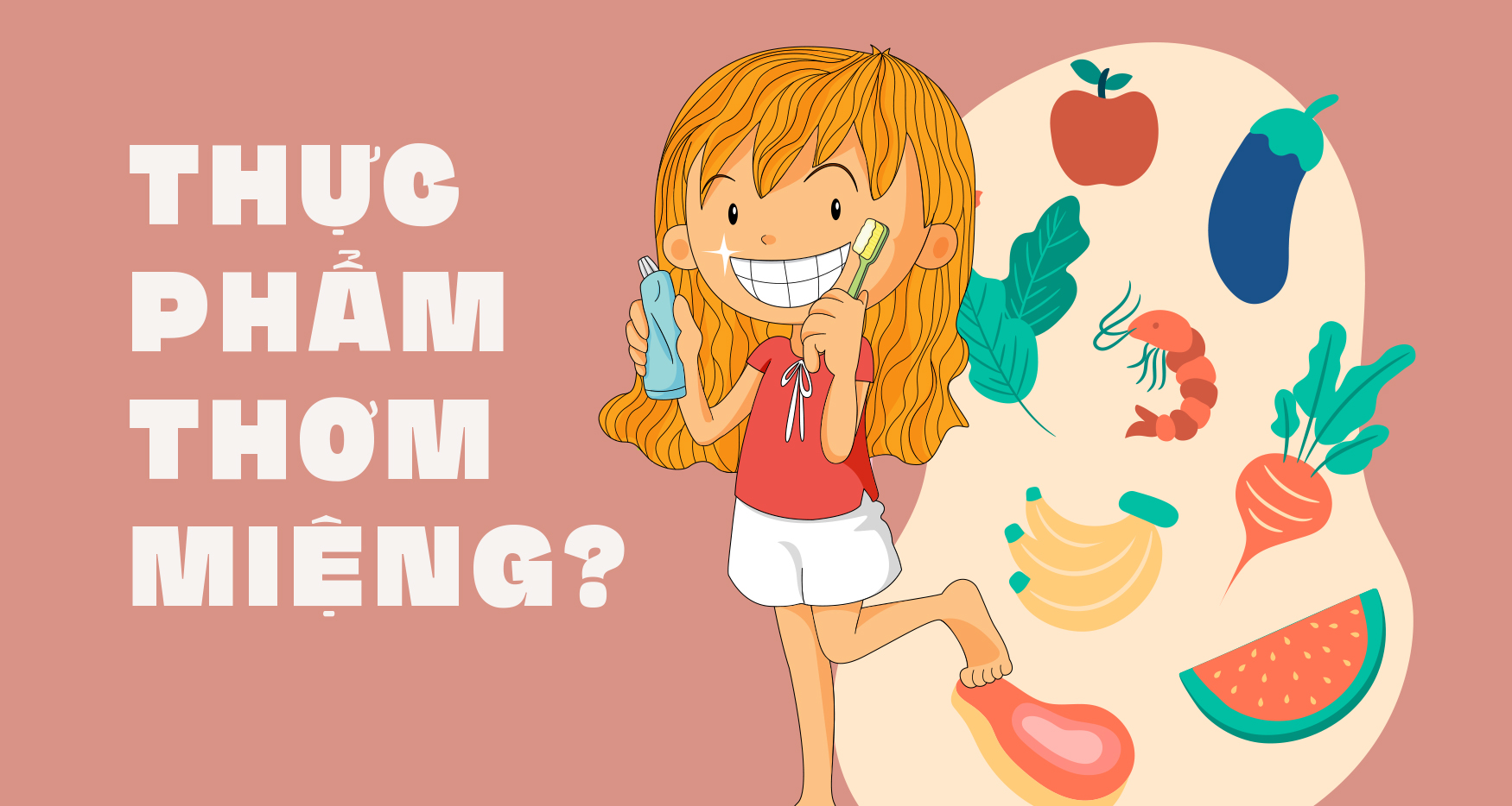 - Một số thực phẩm có khả năng giảm lượng vi khuẩn, mảng bám, những thủ phạm làm hơi thở “kém thơm tho, ngọt ngào”. Ta có thơm (enzym bromelin), sữa chua (axit lactic), dâu tây, bạc hà, trà xanh (polyphenol)... Nói gì thì nói, vẫn không qua được đánh răng, súc miệng bạn ạ!