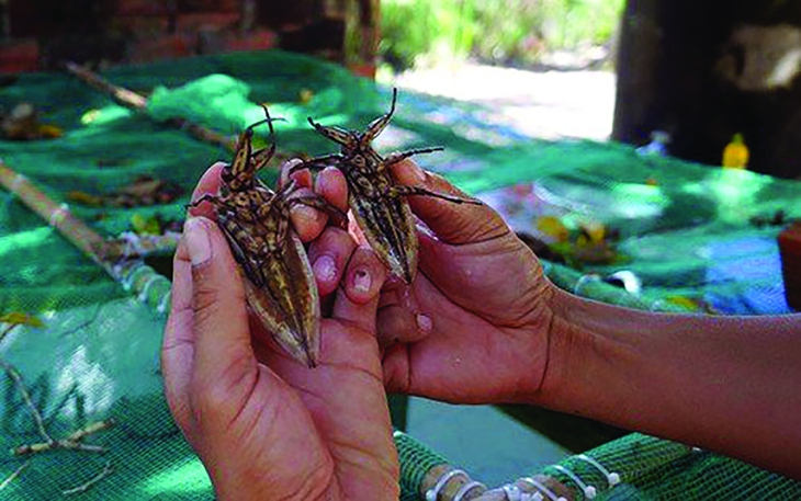 TTCT - Những năm qua, hình ảnh quán ăn Việt phục vụ các món ăn côn trùng không còn lạ lẫm, xuất hiện ở nhiều thực đơn trong các nhà hàng sang trọng. Dế nuôi trên những vỉ trứng giấy tại trại ông Trương Thanh Dũng. Ảnh: MINH DŨNGNuôi theo mô hình công nghiệpTrong trang trại hơn 500m2 ở huyện Đức Hòa (Long An), ông Trương Thanh Dũng (51 tuổi) nuôi dế trong những ô đất nhỏ khoảng 1m2, phân tầng bằng những vỉ trứng giấy cho dế trú ngụ, sinh sản. Nếu nuôi làm thực phẩm cho người, đàn dế sẽ được thả thưa, 1m2 khoảng 7 - 8kg, giúp chúng lớn đủ chuẩn vào nhà hàng (sau khoảng 40 ngày tuổi). Nếu để làm mồi nuôi gà hay chim kiểng, mỗi 1m2 chứa 10kg dế và chỉ cần nuôi khoảng 20 - 30 ngày. Gần 20 năm trước, ông Dũng là một trong những người đầu tiên ở Long An nuôi dế làm thực phẩm cho người. Từng công thức, quy trình đều tự học và cải tiến dần. Theo ông Dũng, dế dễ ăn, dễ sống và gần như không mắc bệnh gì. Dế cũng là loài sạch, vì nếu ăn phải bất cứ hóa chất nào, dế sẽ chết ngay. Thành bại của nghề nuôi dế nằm ở cái tâm của người nuôi để đàn dế phát triển đạt kích thước và ngoại hình đẹp nhất.“Người nuôi lâu sẽ hiểu từng con dế của mình. Họ biết trời mùa lạnh nên nuôi mật độ dày hơn một chút cho dế ấm, trời nóng thì nuôi thưa ra để chúng mát mẻ. Khi được chăm chút tốt, dế đẹp và dễ bán” - ông giải thích. Ông Lê Thanh Tùng (40 tuổi) cũng có gần 20 năm kinh nghiệm nuôi 1.000m2 dế ở huyện Củ Chi (TP.HCM). Kinh nghiệm nuôi dế của ông cũng đơn giản: thức ăn cho dế ảnh hưởng đến mùi vị khi được chế biến, vì vậy, dế làm thực phẩm cho người cần được cho ăn cỏ thay vì các loại như bã đậu, lá củ mì... vốn thường khiến dế khi lên món ăn có mùi hôi khó chịu.Chị Lý Thị Tú Trinh, (quận Ô Môn, TP Cần Thơ) - người gầy dựng 20 chuồng nuôi dế từ năm 2019 - cho biết dế có nhiều loại: dế cơm, dế mèn, dế nhũi nhưng dế mèn Thái háo ăn, dễ nuôi và lớn nhanh.Dế nuôi khoảng tháng rưỡi là xuất bán. Hiện dế thịt giá 100.000 đồng/kg và trứng dế 200.000 đồng/kg (trứng dế trộn với mụn dừa lót mâm cho dế đẻ). Sau khi trừ chi phí, mỗi chuồng lời khoảng 500.000 - 600.000 đồng. Khoảng 50 ngày là dế cái mang trứng, dế đẻ 4 - 5 lứa. Dế cái đẻ lứa cuối trong vòng 7 - 10 ngày sẽ chết.Ông Lê Thanh Tùng bên những thùng nuôi dế của mình. Ảnh: TRỌNG NHÂNĐường tới nhà hàng sang trọngNăm 2016, anh Cao Nguyễn Đô Lăng (huyện Châu Thành, An Giang) bắt đầu nuôi cà cuống (dân gian hay gọi là bọ xít nước) từ 100 con giống. Lần đầu bị thất bại, nhưng nay anh đã có thể thuần và nuôi cà cuống bằng nước máy thay vì bằng nước sông, kênh, hồ. “Mỗi chuồng nuôi khoảng 60 con bố mẹ, khoảng 80 - 95 ngày cà cuống cái mang trứng, cà cuống con nuôi 45 ngày là bán. Thức ăn cho cà cuống là cá con, nòng nọc (ếch, nhái còn nhỏ), dế... Cà cuống cái đẻ quanh năm, chu kỳ mang trứng từ 1 - 1,5 tháng/lần và mỗi lần đẻ hơn 100 trứng. Giá bán cà cuống thịt 40.000 đồng/con, cà cuống giống 400.000 đồng/cặp, trứng là 1 triệu/ổ. Hiện anh có 10 bể, mỗi tháng bán được khoảng 80 - 300 con cà cuống. Mình thuần được rồi thì lợi nhuận mang về khá cao”, anh nói.Từ con dế, ông Lê Thanh Tùng cũng bắt đầu nuôi những loại côn trùng khác. Khoảng chục năm trước, khi thấy giá cà cuống lên cao nhưng ngoài hoang dã không còn nhiều, ông quyết định gây đàn thương phẩm từ 5 con giống. Đến nay, đàn có khoảng 5.000 con. Cà cuống được nuôi trong các ô ximăng có nước và thêm các loài thực vật thủy sinh. Quan trọng ở chỗ người nuôi phải chủ động nguồn thức ăn. Cà cuống thích ăn dế hay cá nhỏ còn sống, nếu chết chúng sẽ chê. Vì vậy, anh Tùng phải “thủ” sẵn một ao nhỏ nuôi cá và những thùng nuôi dế dành riêng cho cà cuống.Mỗi bể nuôi từ 100 - 120 con, nếu quá đông, chúng sẽ tự ăn thịt lẫn nhau. Mực nước trong ô nuôi lý tưởng là 0,5m và phải sạch, 15 - 20 ngày thay nước một lần. Trung bình khoảng 2 tháng thì cà cuống đạt kích cỡ xuất bán. Sau khoảng 32 - 50 ngày từ khi sinh ra, chúng dài 8cm, rộng 3cm, trọng lượng 80 - 100 con/kg. Loài này khá ít thịt, nhưng do có túi tinh dầu trong ngực nên khi nướng rất thơm, có vị đặc trưng, được khách hàng trung và cao cấp ưa chuộng. Các nhà hàng thu mua giá từ 3,2 - 3,5 triệu đồng/kg.Ông Tùng cũng đang nuôi bọ cạp theo hình thức bán hoang dã, giăng lưới một góc vườn, phủ gáo dừa làm nơi trú ẩn và tạo ẩm độ thích hợp cho chúng phát triển. Bọ cạp không ăn thịt lẫn nhau nên dễ nuôi nhiều thế hệ cùng một chỗ. Người nuôi chỉ cần lật gáo xem con nào đến lứa khoảng 2,5 tháng thì đem bán, con non hoặc cặp bố mẹ thì giữ lại để gây những đàn tiếp theo.“Bọ cạp có thể ăn những thức ăn thừa của cà cuống. Nhờ vậy trại tạo được nguồn thức ăn gần khép kín”, ông Tùng nói. Khi trưởng thành, bọ cạp nặng khoả