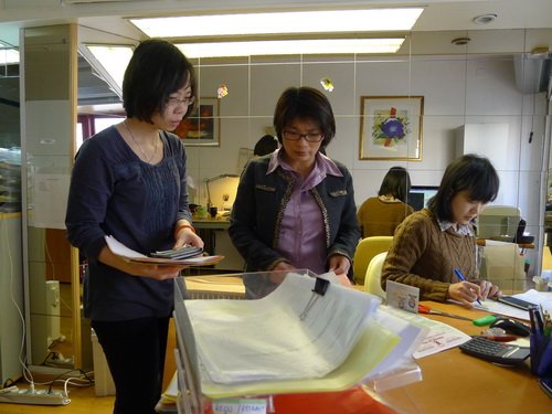 Công ty nhỏ của chị Đinh Thị Hoa (giữa), chuyên làm dịch vụ hỗ trợ xuất nhập cảnh, vẫn bận rộn nhờ các công ty Pháp đang tìm cách vươn ra nước ngoài để tránh suy thoái trong nước - Ảnh: T.H.
