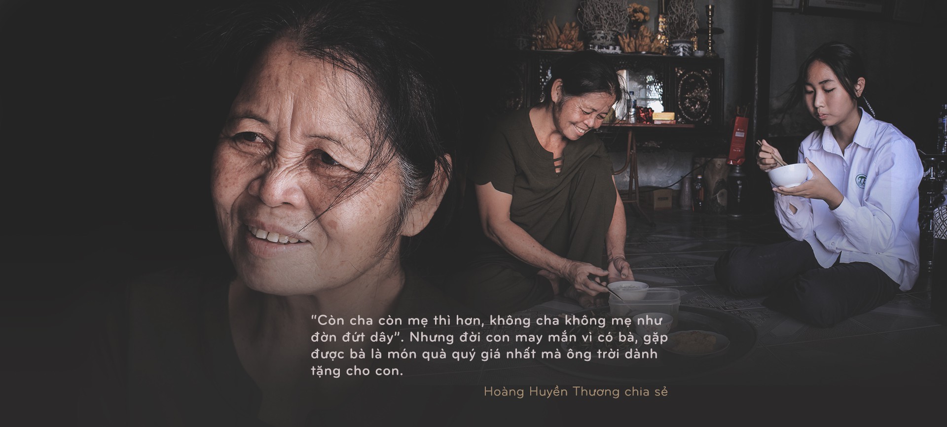 "Từ hồi còn bé tí không hiểu sao lúc nào em cũng sợ xa bà. Có hôm còn làm tấm thiệp tặng bà vì không muốn mất bà. Em sợ… Giờ nếu mẹ có quay về, em vẫn chọn ở với bà. Bà là mẹ, là cha, là người thân duy nhất của em", Thương nghẹn giọng khi nhắc đến bà.