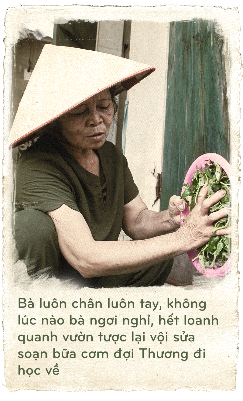Một tay bà nuôi nấng Thương, từ lúc con bi bô tập nói, lẫm chẫm bước đi rồi được đến trường như bao đứa trẻ khác.
