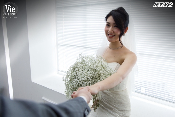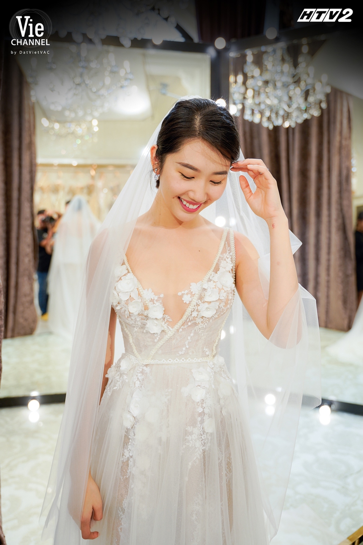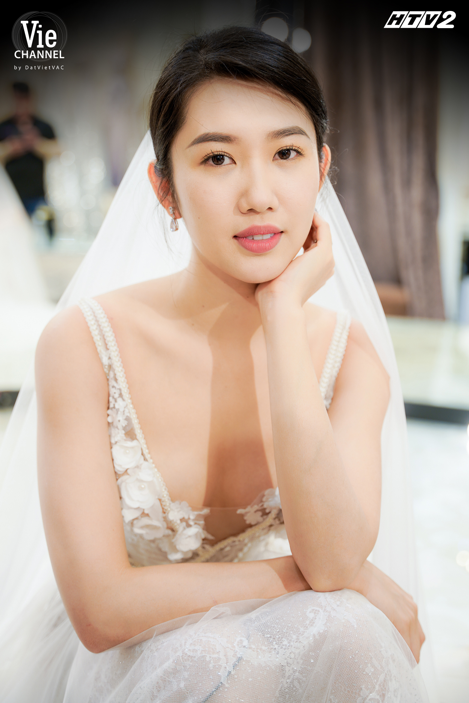Ngân liên tưởng đến ngày cưới của mình, hôm đó không biết mình sẽ mặc kiểu váy cưới nào, có xinh không. Đây không phải là lần đầu tiên Ngân diễn vai cô dâu, nhưng không hiểu sao hôm nay mặc chiếc váy cưới lộng lẫy này mình cảm thấy mình rất nhỏ bé và nghĩ đến chuyện… lấy chồng”.